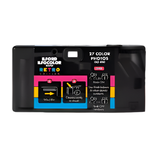 The ILFORD ILFOCOLOR Rapid single use camera is pre-loaded with 27-exposure ISO 400 colour negative film. The fast film combined with a built-in flash makes the ILFOCOLOR Rapid a versatile performer, delivering great results outdoors and indoors in low light as well.